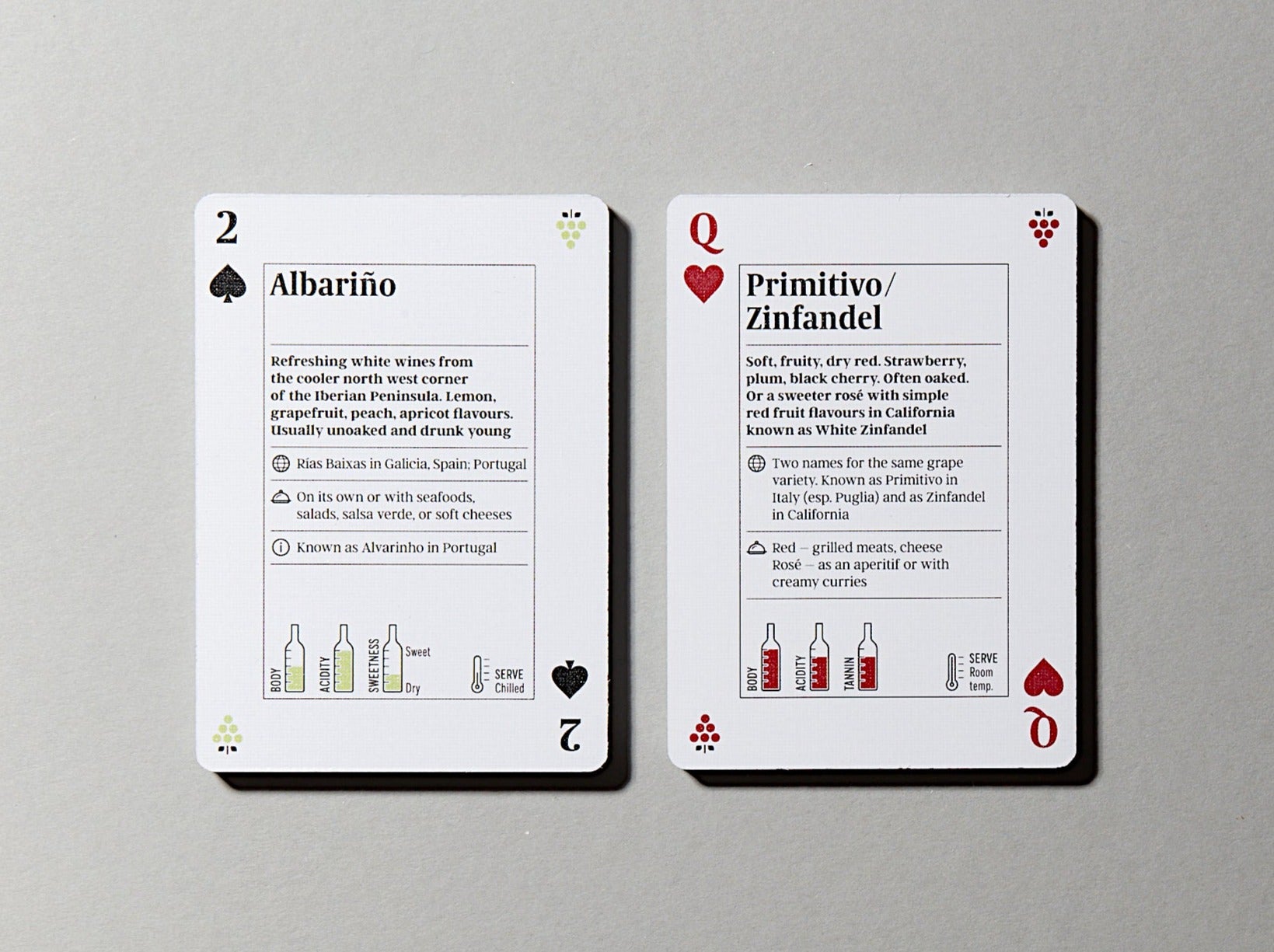 The 52 cards each cover different wines, regions or wine grapes. There's a brief overview, then information about the characteristics of the wine, what to look for on labels, food pairing, and other useful facts.